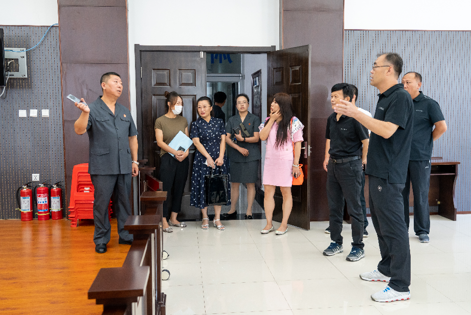 王林军主任一行相继来到诉讼服务中心、金珍玉调解工作室、执行指挥中心、法警队文化墙、党员活动室等区域进行参观调研,并实地考察了审判法庭、“行政争议协调化解中心”。