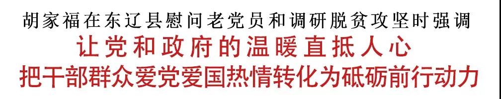 在举国上下同庆新中国成立70周年华诞之际,9月26日,省委常委、政法委书记胡家福深入辽源市东辽县慰问建国前参加革命工作的老党员,实地调研平岗镇身安村脱贫攻坚情况。他指出,不忘本来才能走好未来,牢记老党员的历史贡献和人民群众的热切期盼,既是对历史的尊重,也是对根脉的坚守。我们要对老党员老同志给予更多的关怀,对贫困群众给予更多的关爱,让党和政府的温暖直抵人心,把广大干部群众的爱党爱国热情激发出来、转化为砥砺前行的强大动力。