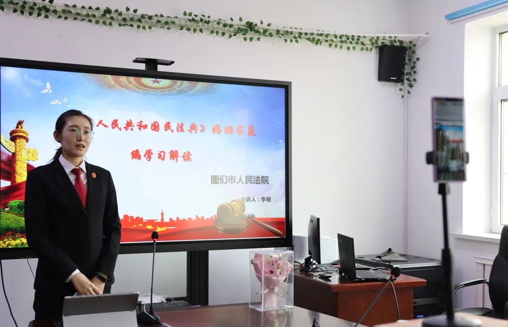 图们法院始终坚持“线上+线下”打造多样化普法阵地,3月8日上午,家事法官采用抖音直播的形式进行线上普法,在这场“云课堂”中,以《民法典》为蓝本,结合今年实施的《家庭教育促进法》等相关内容,着重对受到广泛关注的离婚冷静期、家庭暴力的证据提供、夫妻共同债务的认定以及离婚诉讼损害赔偿的依据、人身权保护令等问题进行了详细的讲解。宣讲中,法官运用通俗易懂的语言,结合生活和审判中的真实案例,为大家深入浅出的解读了《民法典》相关法条,进一步提高妇女自我保护的法律意识和能力。