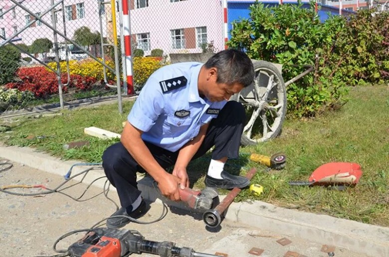 民警老姚叫姚春光,个子不高,一双眼睛里透着一种刚毅。他的工作是负责狱内围墙、电网、照明等警戒设备的日常维护,每天就是围着院墙来回巡检,走到哪查到哪,哪有问题修到哪。