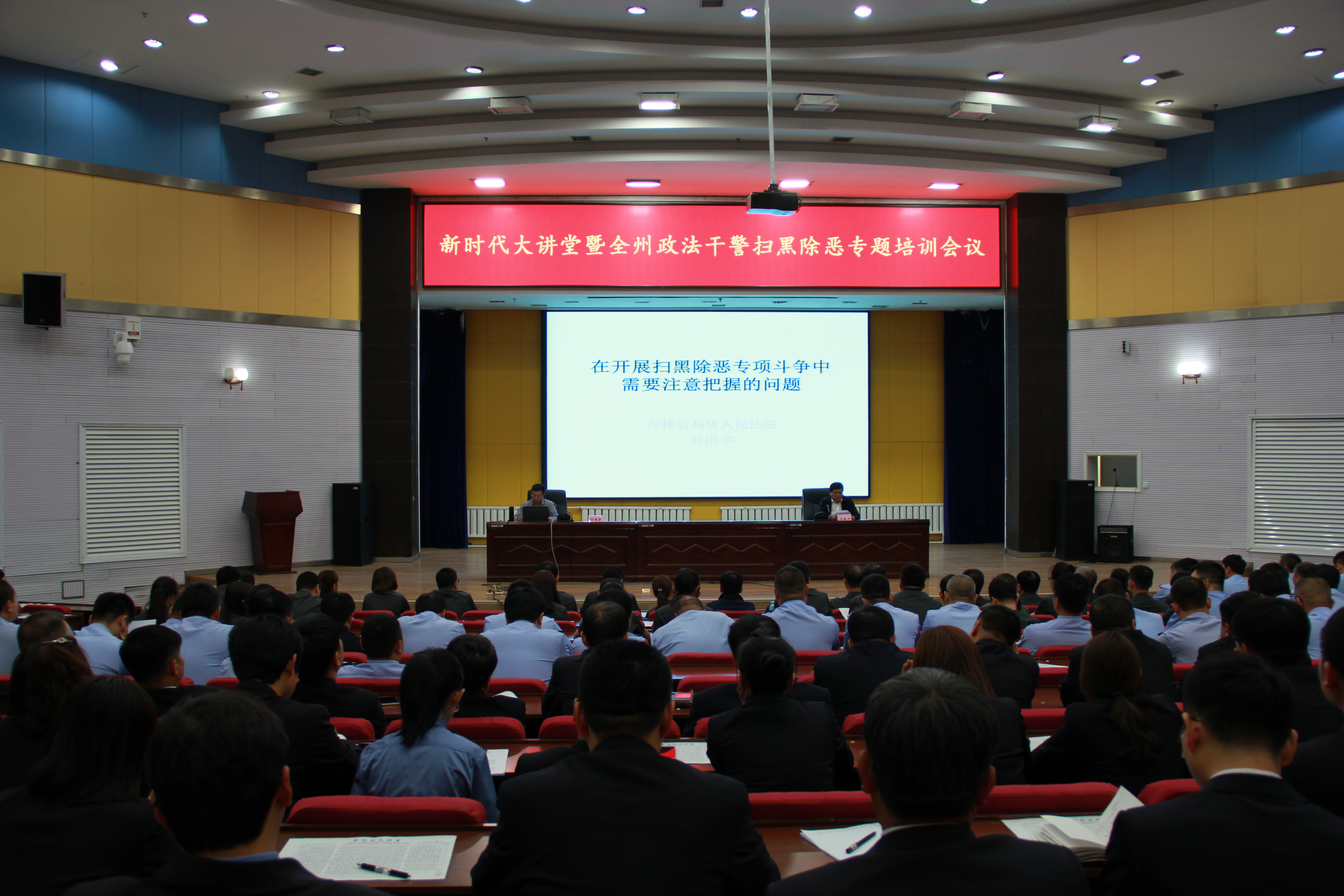 朴春杰指出,此次讲座经州扫黑除恶领导小组决定,由州委组织部以“新时代大讲堂”专题讲座形式组织召开,主要目的是进一步统一全州扫黑除恶侦查、批捕、起诉、审判等环节的执法思想和认识,全面提升办理扫黑除恶案件的业务水平和精准司法能力,切实推动扫黑除恶专项斗争高效开展。