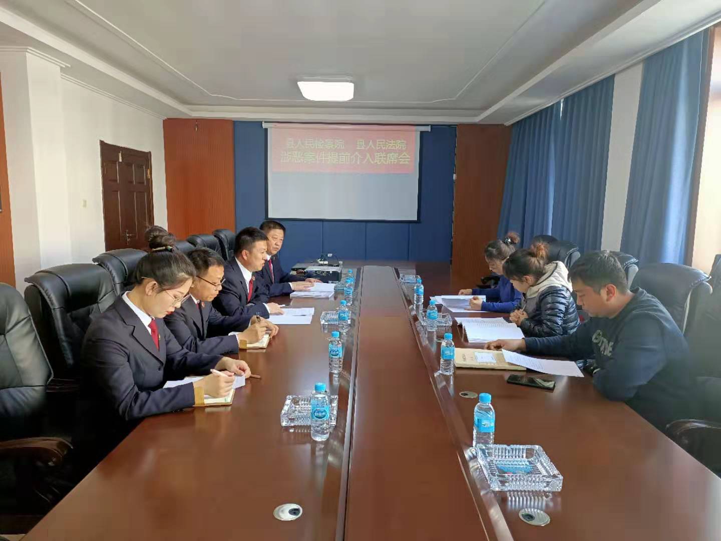 近日,根据上级文件精神和扫黑除恶工作要求,安图县人民法院扫黑除恶专项斗争专业合议庭成员参加了安图县人民检察院组织的涉恶案件提前介入联席会,对一起涉恶案件适度介入。会上,承办该案件的检察官介绍了该案的案情、涉案人数、涉嫌犯罪的罪名,使到会的法官提前了解了案情。