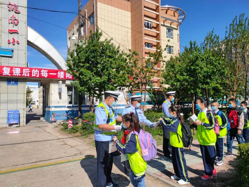 为进一步确保复学返校师生的健康安全,全力维护社会交通秩序和校园周边良好学习环境,洮南公安交巡警大队周密措施、主动作为,提前对校园周边道路安全、消防通道及周边路口进行安全隐患排查,督促校方全面做好人防、车防、路防等防范措施,切实做到问题隐患早发现、早整改,堵塞校园安全漏洞,消除各类道路安全隐患,为返校师生筑起安全防线,全力护航各学校有序复学返校。