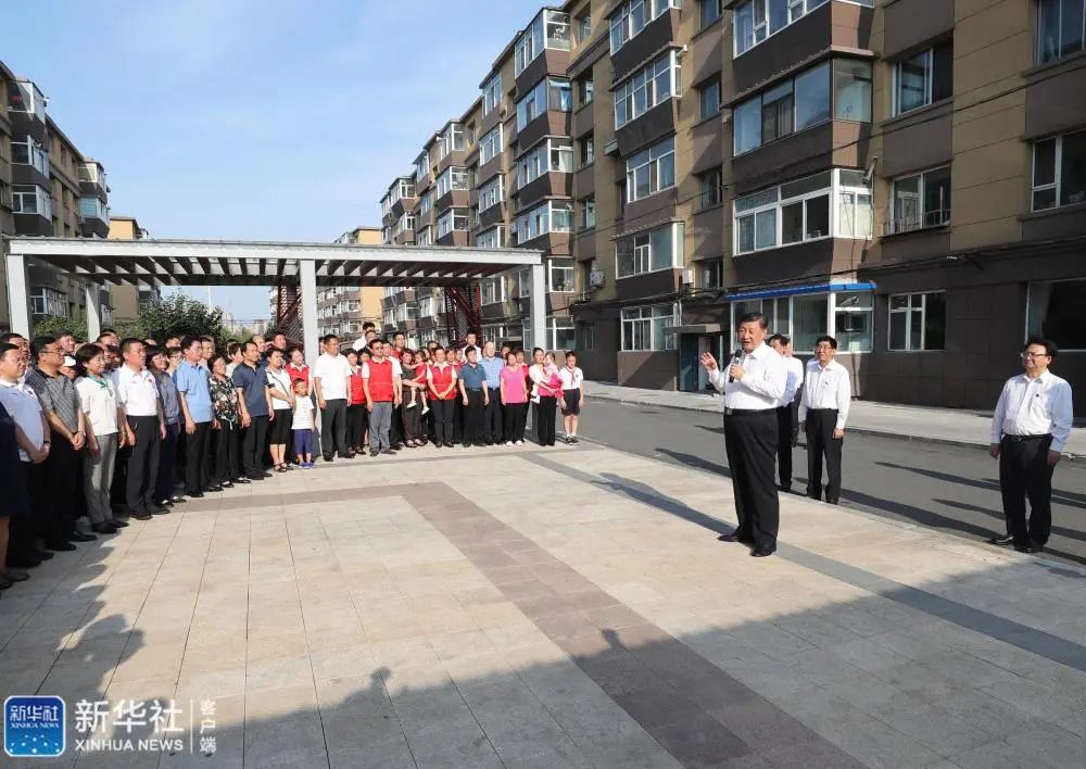 ↑7月22日至24日,中共中央总书记、国家主席、中央军委主席习近平在吉林省考察。这是7月23日下午,习近平在长春市宽城区团山街道长山花园社区广场,同居民们亲切交流。新华社记者 王晔 摄