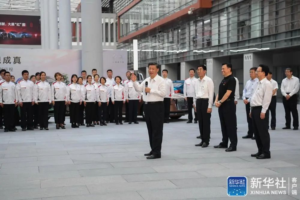 企业展厅里,习近平察看了最新款式的整车产品,了解集团创新驱动、体制机制创新、产业结构优化升级情况,并同职工代表简短交流。他强调,推动我国汽车制造业高质量发展,必须加强关键核心技术和关键零部件的自主研发,实现技术自立自强,做强做大民族品牌。当今世界制造业竞争激烈,要抢抓机遇,大力发展战略性新兴产业,实现弯道超车。希望大家发愤图强、不负韶华,在推动东北振兴中奉献聪明才智,在实现中华民族伟大复兴中国梦的进程中书写壮丽的青春华章。